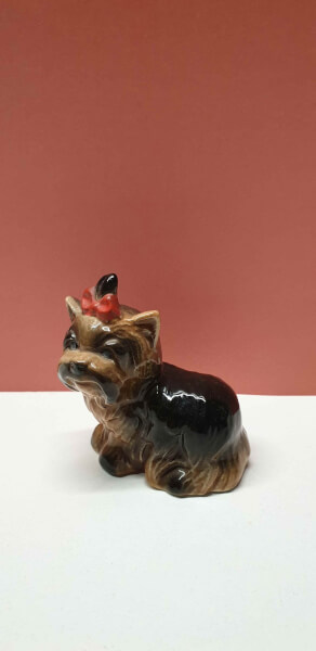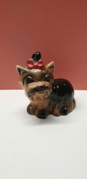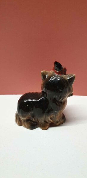 Schattig klein beeldje van een hondje met strik in het haar. Het beeldje komt uit de selectie van het bekende Duitse merk Goebel en is gemaakt van porselein. Het is handbeschilderd en puntgaaf. Hoogte 6,5 cm en breedte 5,3 cm. Het beeldje is aan de onderzijde gemerkt en genummerd.